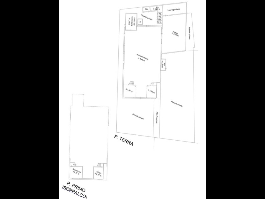 La zona soppalcata, accessibile da due rampe di scale indipendenti tra loro è composta dai numero due locali ad uso ufficio.