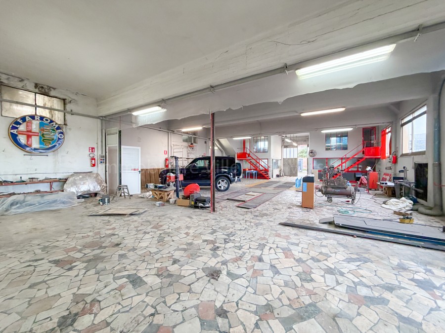 Il capannone ad uso carrozzeria, come ultima attività svolta, è ubicato al solo piano terra ed è internamente in parte soppalcato, corredato da annessi e tettoia, avente una superficie commerciale, pari a circa mq. 551,70 ed è così composto: piano terra da ampio locale ad uso carrozzeria, suddiviso internamente da pareti amovibili, cabina per verniciature, magazzino, ripostiglio, corredato da locali per servizi igienici, ripostigli, tettoie e da resede, pari a circa 700 mq, sui tre lati liberi parte a verde e parte lastricata